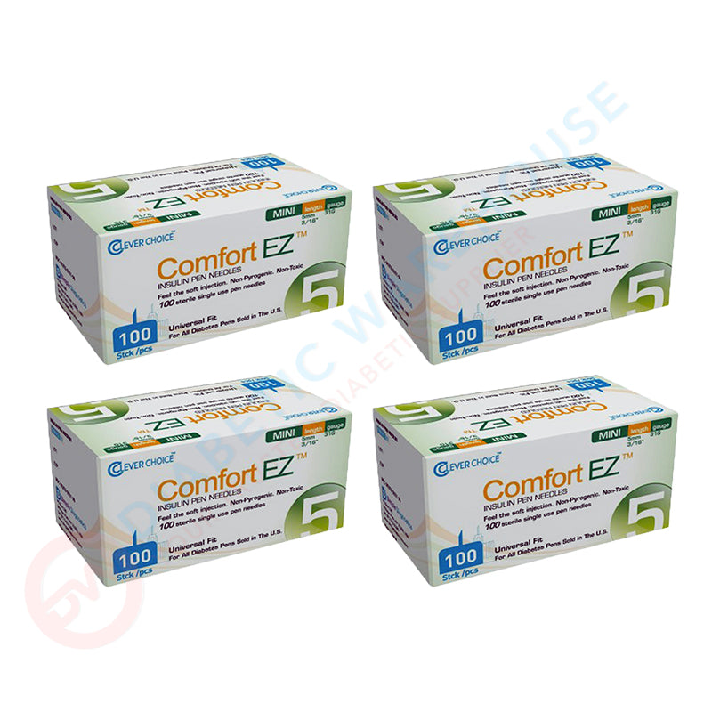The Clever Choice Comfort EZ insulin pen needles are the perfect choice for precise and comfortable injections. They are multi-faceted and beveled with a lubricant coating for maximum comfort and accuracy. These 31G 5mm needles come in packs of 4 and each pack contains 100 needles for a total of 400 pen needles.