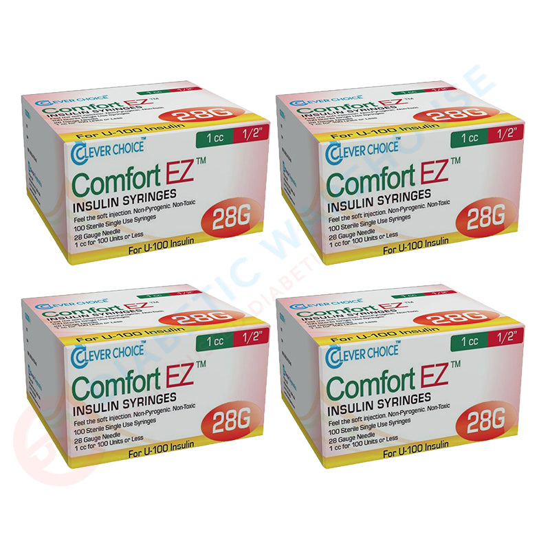 4 Packs of 100 Clever Choice Comfort EZ Insulin Syringes - 28G, 1cc, 1/2"