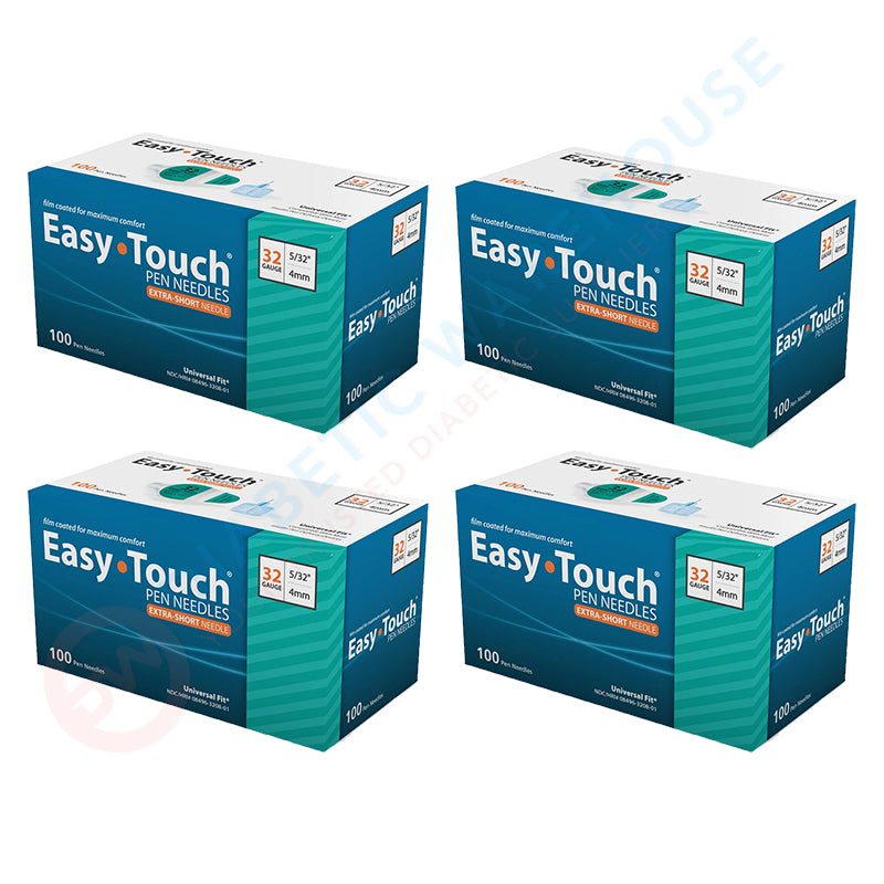 4 Packs of 100 EasyTouch Pen Needles - 32G, 5/32″ (4mm)