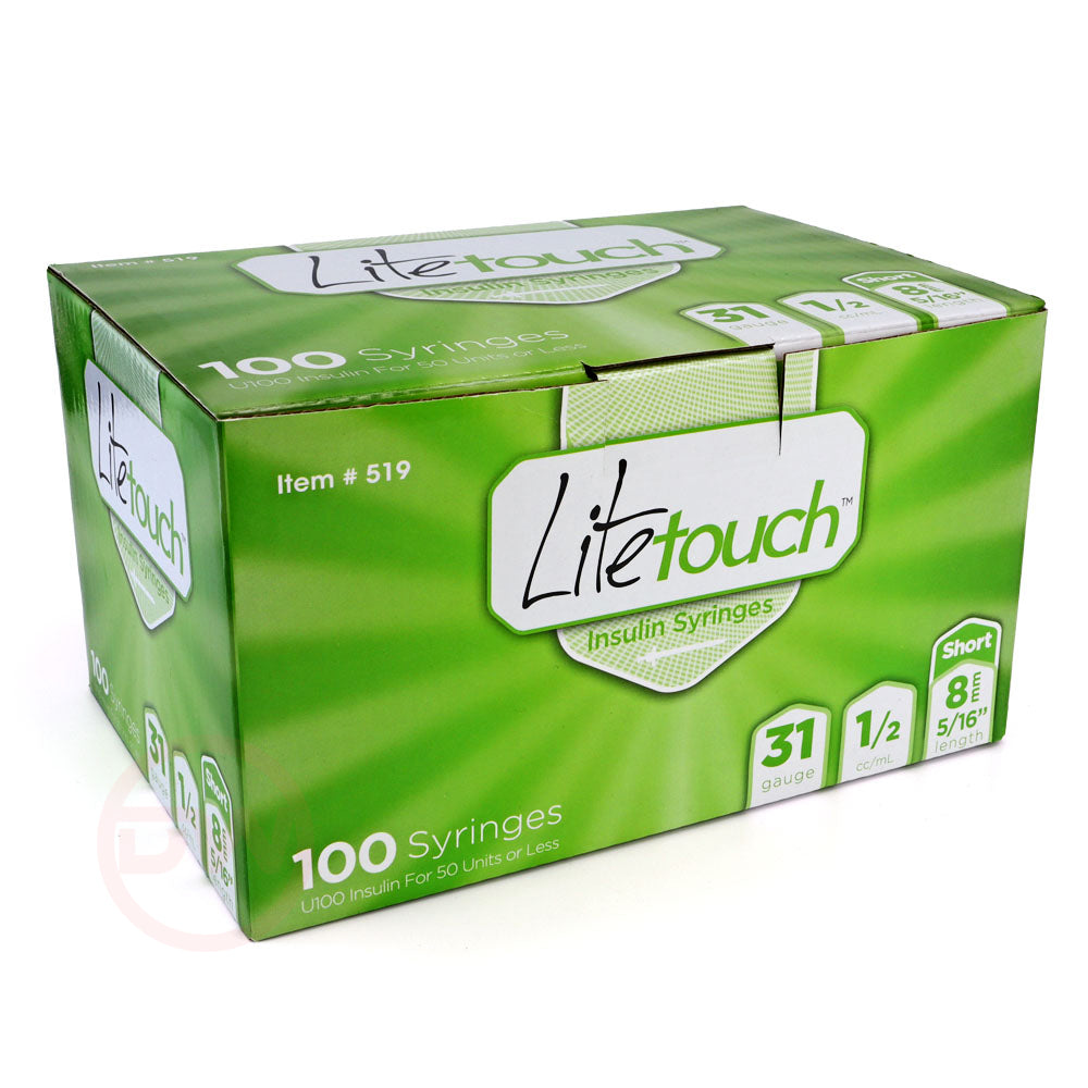 100 LiteTouch Insulin Syringes - 31G x 0.5cc x 5/16″ (8mm)