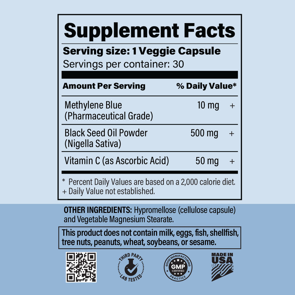 Methylene Blue is a well-researched compound known for its ability to support mitochondrial function—the core energy-producing structures within cells. By improving oxygen utilization and combating oxidative stress, it helps promote clearer thinking, consistent energy, and overall well-being.