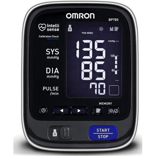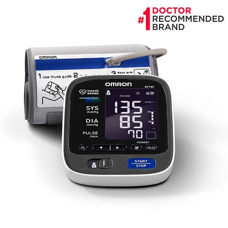 The Omron 10 Series Upper Arm Blood Pressure Monitor (BP785) provides you with the greatest level of accuracy with the Calibration Check System. The 10 Series features the Two User Mode and includes a pre-formed ComFit Cuff that expands to fit both regular and large sized arms. A Cuff Wrap Guide Indicator on the monitor will confirm the cuff is wrapped correctly around your upper arm.