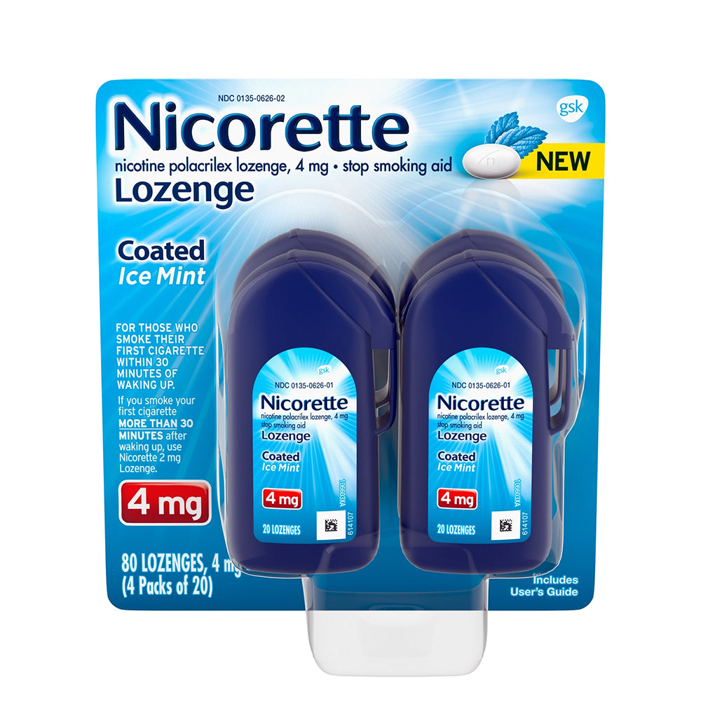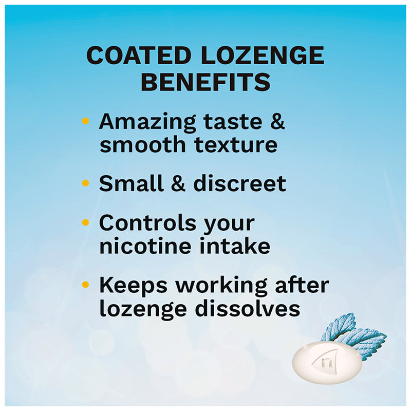 Nicorette Coated Ice Mint Lozenge offers a bold flavor and even bolder relief. This stop smoking aid is the first and only FDA-approved coated lozenge available on the market today. Nicorette’s smoking cessation lozenges are fast-acting aids which help you fight those sudden cravings. Each nicotine lozenge is a coated tablet that gives you a satisfying sensation as it dissolves in your mouth. Featuring a specially coated outer shell, these nicotine lozenges offer a smooth, non-chalky texture and refreshing bold Icey Mint flavor that last longer than any craving and helps gradually diminish your overall dependence on nicotine.