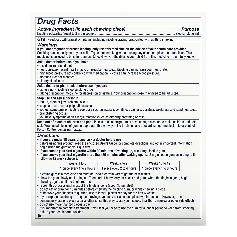 Offered in the great-tasting Mint flavor, the 2mg Nicorette Gum strength is recommended for smokers who smoke their first cigarette more than 30 minutes after waking up. Nicorette Gum also allows users to chew a second piece of nicotine gum within the hour if they are experiencing strong or frequent cigarette cravings. Smokers can utilize the "Chew and Park"method of nicotine gum. Chew the Nicorette Gum until you can feel a tingling sensation in your mouth. Then "park"the nicotine gum between your cheek & gums. Once the tingling sensation is almost gone, start chewing again. Repeat this for about 30 minutes until the tingle is gone.