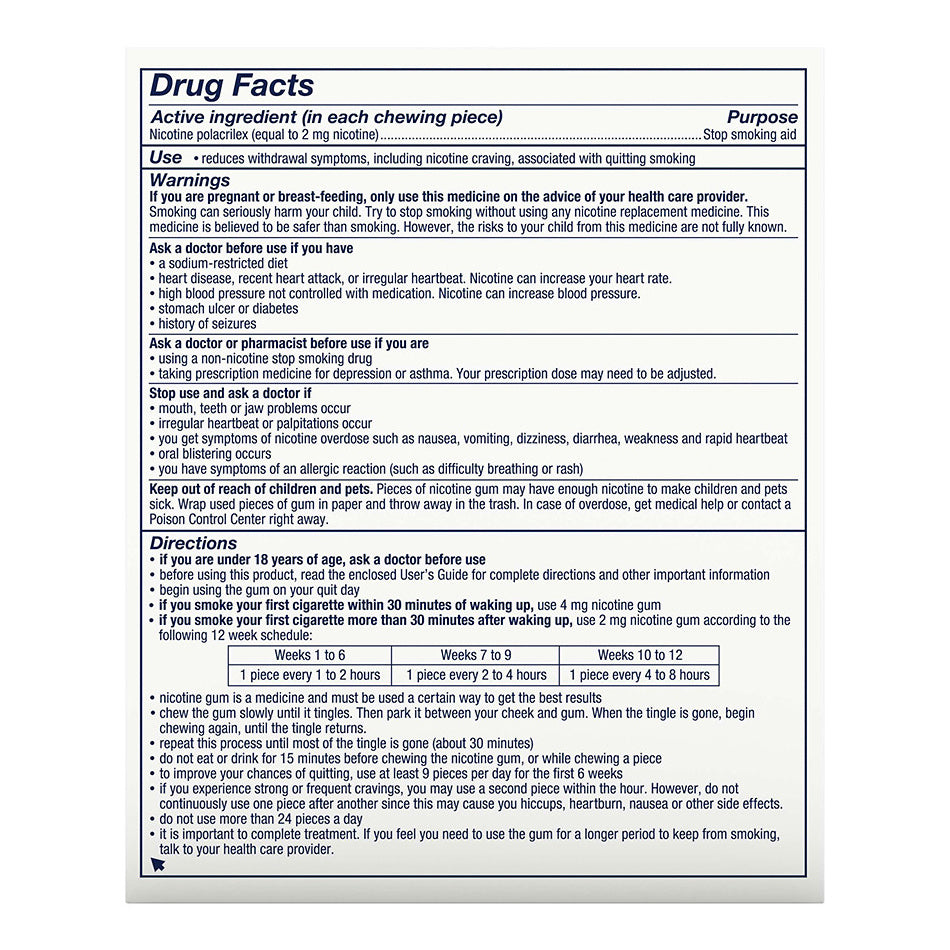 Offered in the great-tasting Original flavor, the 2mg Nicorette Gum strength is recommended for smokers who smoke their first cigarette more than 30 minutes after waking up. Nicorette Gum also allows users to chew a second piece of nicotine gum within the hour if they are experiencing strong or frequent cigarette cravings. Smokers can utilize the "Chew and Park"method of nicotine gum. Chew the Nicorette Gum until you can feel a tingling sensation in your mouth. Then "park"the nicotine gum between your cheek & gums. Once the tingling sensation is almost gone, start chewing again. Repeat this for about 30 minutes until the tingle is gone.