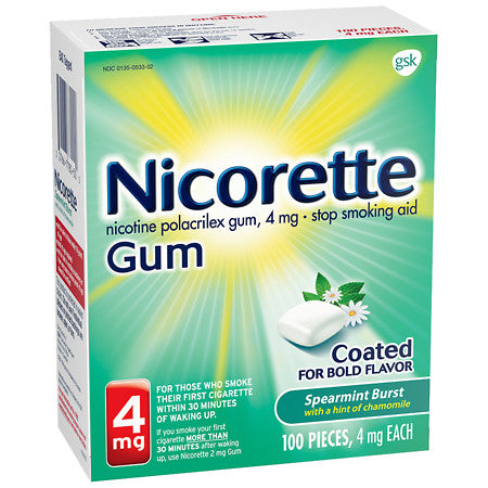 Offered in the great-tasting Spearmint Burst flavor, the 4mg Nicorette Gum strength is recommended for smokers who smoke their first cigarette within 30 minutes of waking up. Nicorette Gum also allows users to chew second piece of nicotine gum within the hour if they are experiencing strong or frequent cigarette cravings. Smokers can utilize the "Chew and Park"method of nicotine gum. Chew the Nicorette Gum until you can feel a tingling sensation in your mouth. Then "park"the nicotine gum between your cheek & gums. Once the tingling sensation is almost gone, start chewing again. Repeat this for about 30 minutes until the tingle is gone.