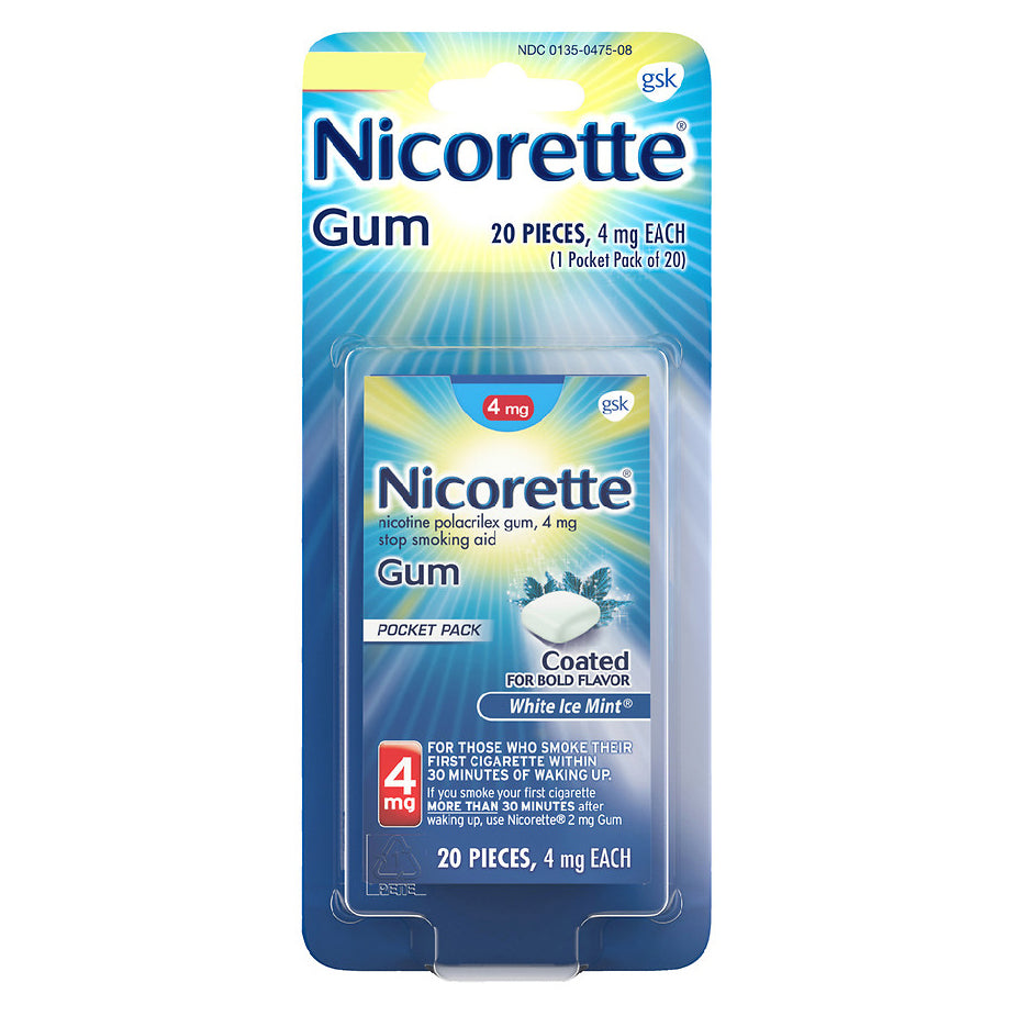 Offered in the great-tasting White Ice Mint flavor, the 4mg Nicorette Gum strength is recommended for smokers who smoke their first cigarette within 30 minutes of waking up. Nicorette Gum also allows users to chew second piece of nicotine gum within the hour if they are experiencing strong or frequent cigarette cravings. Smokers can utilize the "Chew and Park"method of nicotine gum. Chew the Nicorette Gum until you can feel a tingling sensation in your mouth. Then "park"the nicotine gum between your cheek & gums. Once the tingling sensation is almost gone, start chewing again. Repeat this for about 30 minutes until the tingle is gone.