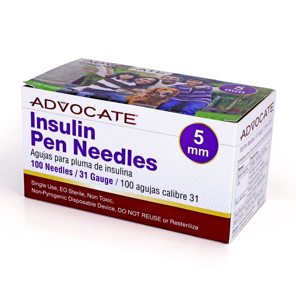 Advocate Pen Needles 5mm 31G are ultra-fine, sterile, single-use needles designed for safe, comfortable, and effective insulin delivery. Compatible with most insulin pens, these 31-gauge needles ensure a smooth injection experience with minimal discomfort. Each needle is individually sealed for maximum hygiene and safety.