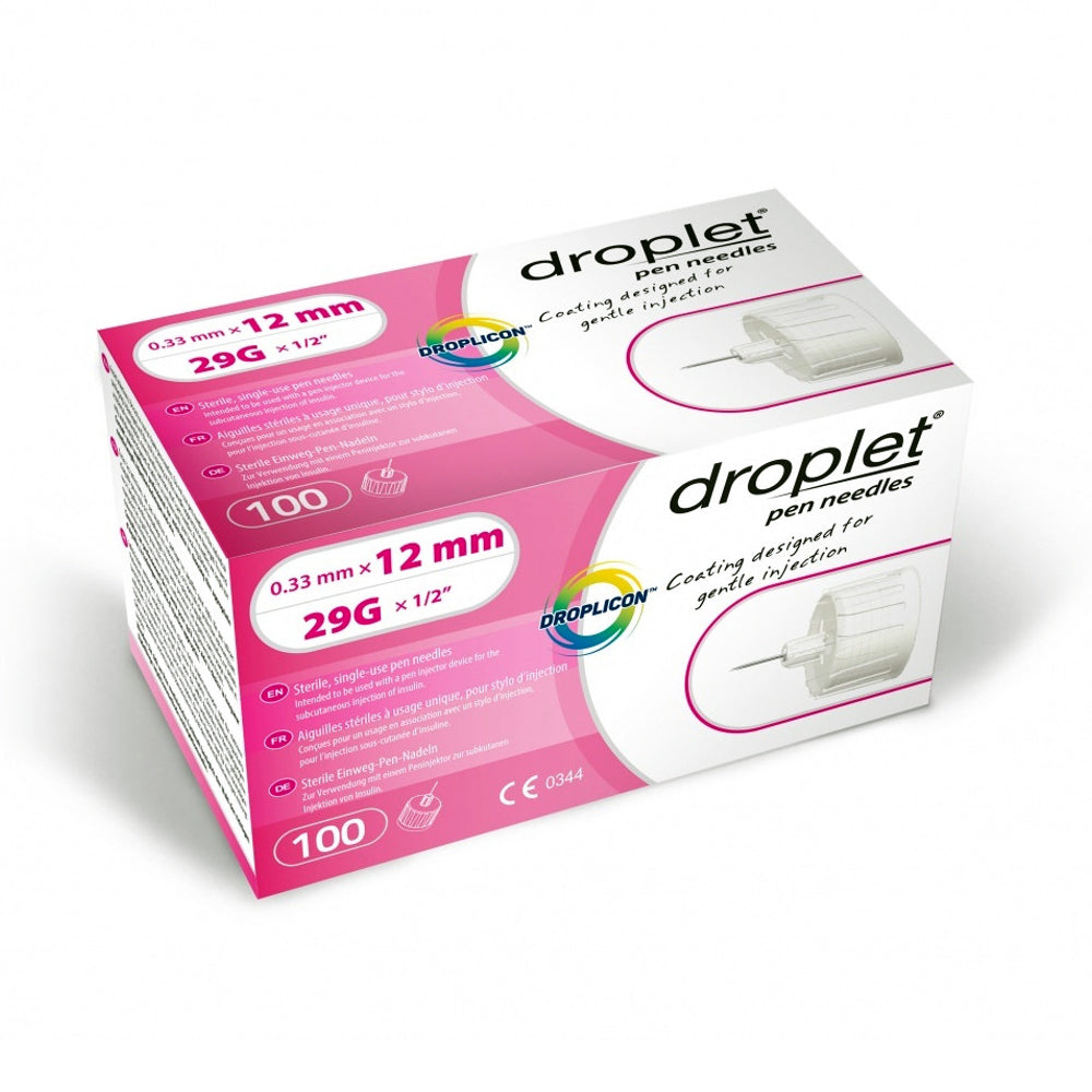 The Droplet Pen Needles are sterile, single-use pen needles intended to be used with a pen injector device for the subcutaneous injection of insulin. Intended to be used by those with diabetes, the 29G 12mm size aids in delivering insulin dosage accuracy and a more comfortable injection.
