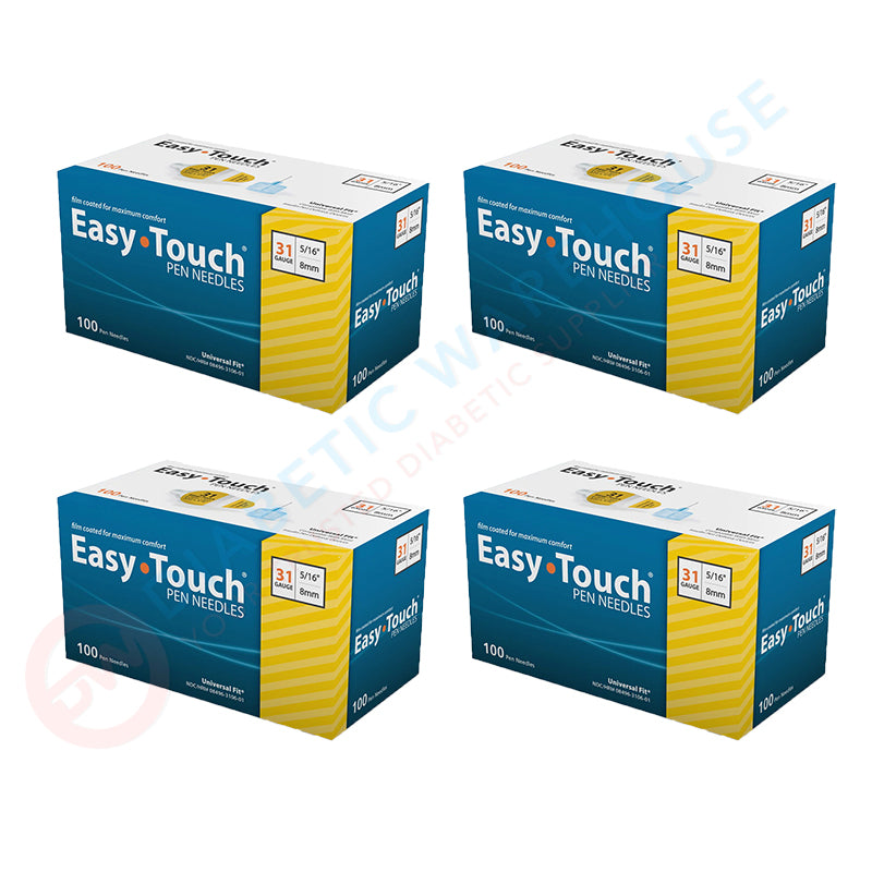 4 Packs of 100 EasyTouch Pen Needles - 31G, 5/16″ (8mm)