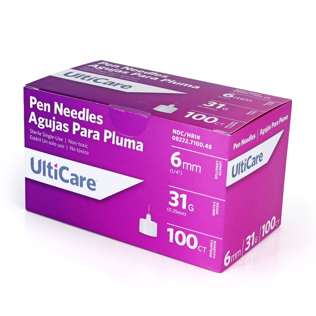 100 x UltiCare Pen Needles - 6mm (1/4”) 31G