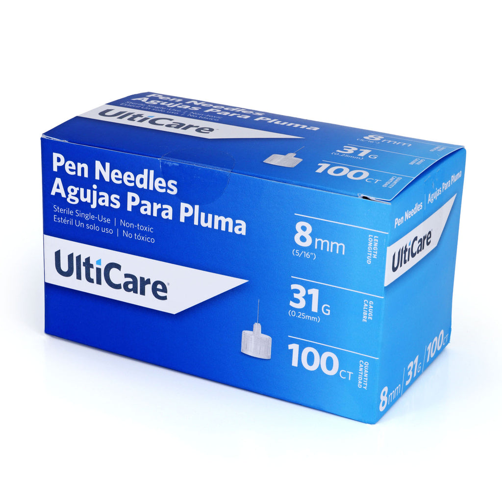 100 x UltiCare Pen Needles - 8mm (5/16”) 31G
