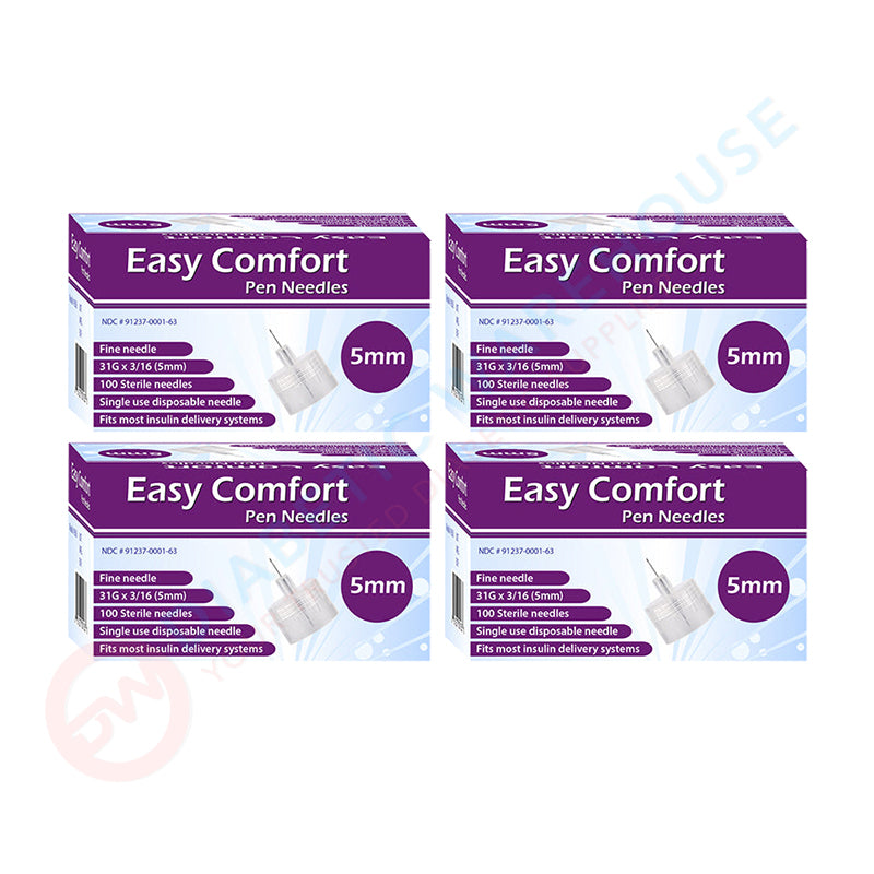 4 Packs of 100 Easy Comfort Pen Needles 31G, 5mm, 3/16″ (400 pen needles total)