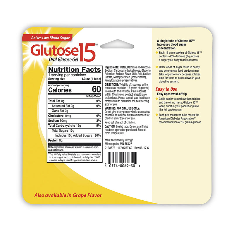 These fast-acting glucose tubes of gel contain 15 grams of glucose perfect for raising your blood sugar in a pinch and to treat hypoglycemia.
