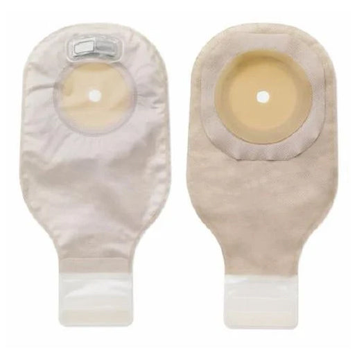 This one-piece drainable pouch system is designed to be opened at the bottom when emptying. These pouches are best suitable for colostomies or ileostomies. The Flextend barrier is an extended wear skin barrier, which is very durable and it offers high resistance to erosion. The Lock 'n Roll microseal closure utilizes plastic interlocking fasteners to create a secure closure at the bottom of the ostomy pouch. The AF300 filter allows for a slower release and deodorization of gas from the Hollister pouch. Soft, beige ComfortWear pouch panels on body side help provide great comfort.