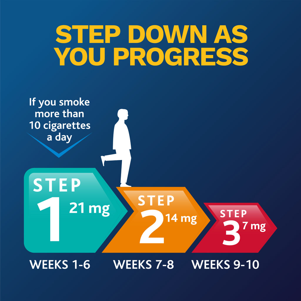 To begin your stop smoking program, start with NicoDerm CQ Step 1 nicotine patch if you smoke more than 10 cigarettes per day. However, if you smoke less than 10 cigarettes per day, start with the NicoDerm CQ nicotine patch Step 2. After completing Step 2, follow Step 3 to complete the quitting smoking program. Please follow the recommended steps and instructions on the back of the box for optimal results. Completing the full program will increase your chances of successfully quitting smoking.