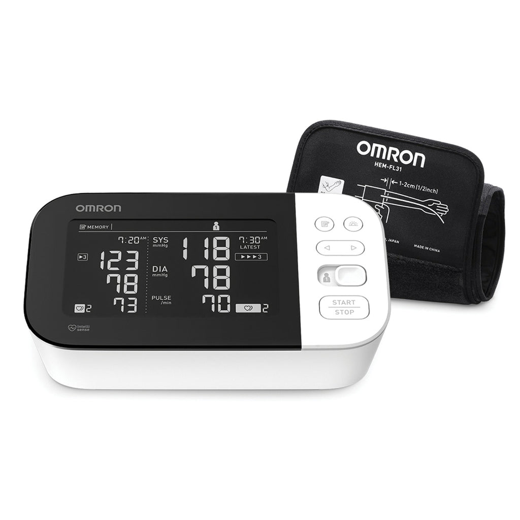 Omron's 10 Series Wireless Upper Arm Blood Pressure Monitor features a horizontally designed, dual LCD monitor, which lets you immediately compare your current reading to your last reading, while the large backlit side-by-side comparison display, which is black, makes your readings easier to see.